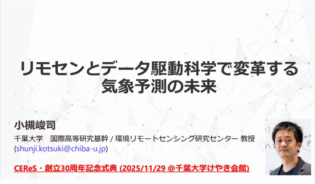 リモセンとデータ駆動科学で変革する気象予測の未来 (2025年11月29日 CEReS30周年記念式典・記念講演より)