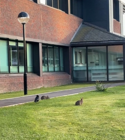寮の近くには野生のうさぎが居て、よく散歩をしてリフレッシュしています。